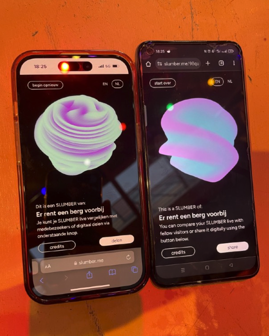 Festival Cement heeft met Slumber een tool ontwikkeld waarmee bezoekers betekenis kunnen geven aan wat ze hebben hebben gezien. Niet door te zeggen of ze het goed of slecht vonden, maar door te kiezen voor een kleur, een dynamiek en waar ze het hebben gevoeld. Ask your Audience deed onderzoek naar de impact die van deze manier van reflecteren heeft op de ervaring van bezoekers. Die vertelden ons dat ze het een openbaring vonden dat ze mochten reflecteren zonder meteen een mening te moeten hebben. En dat je soms iets voelt, maar niet begrijpt en dat dat er ook mocht zijn.